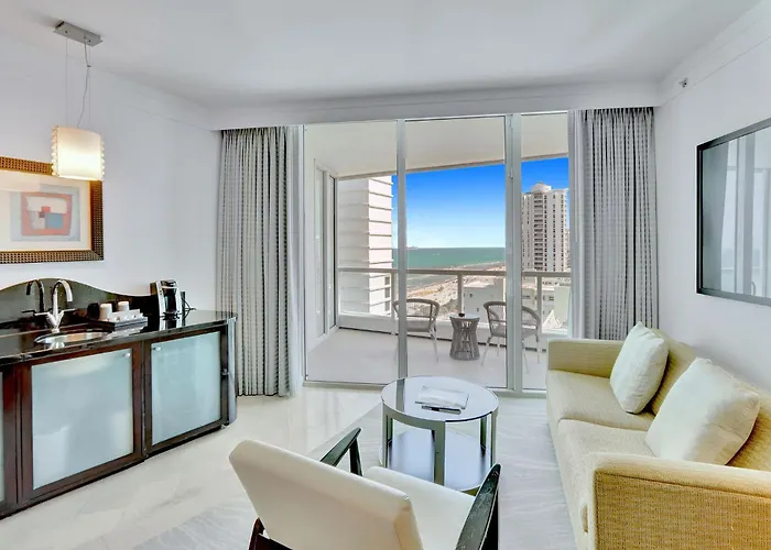 Dentro del Luxury Oceanview Suite At The Fontainebleau Miami Beach With Balcony, King & Sofa Bed hay una pequeña cocina donde los huéspedes pueden preparar sus propias comidas caseras. Se encuentra al alcance de la parada de autobús más cercana: Collins Avenue & 41st Street. Los huéspedes pueden darse un chapuzón en una piscina con un spa.